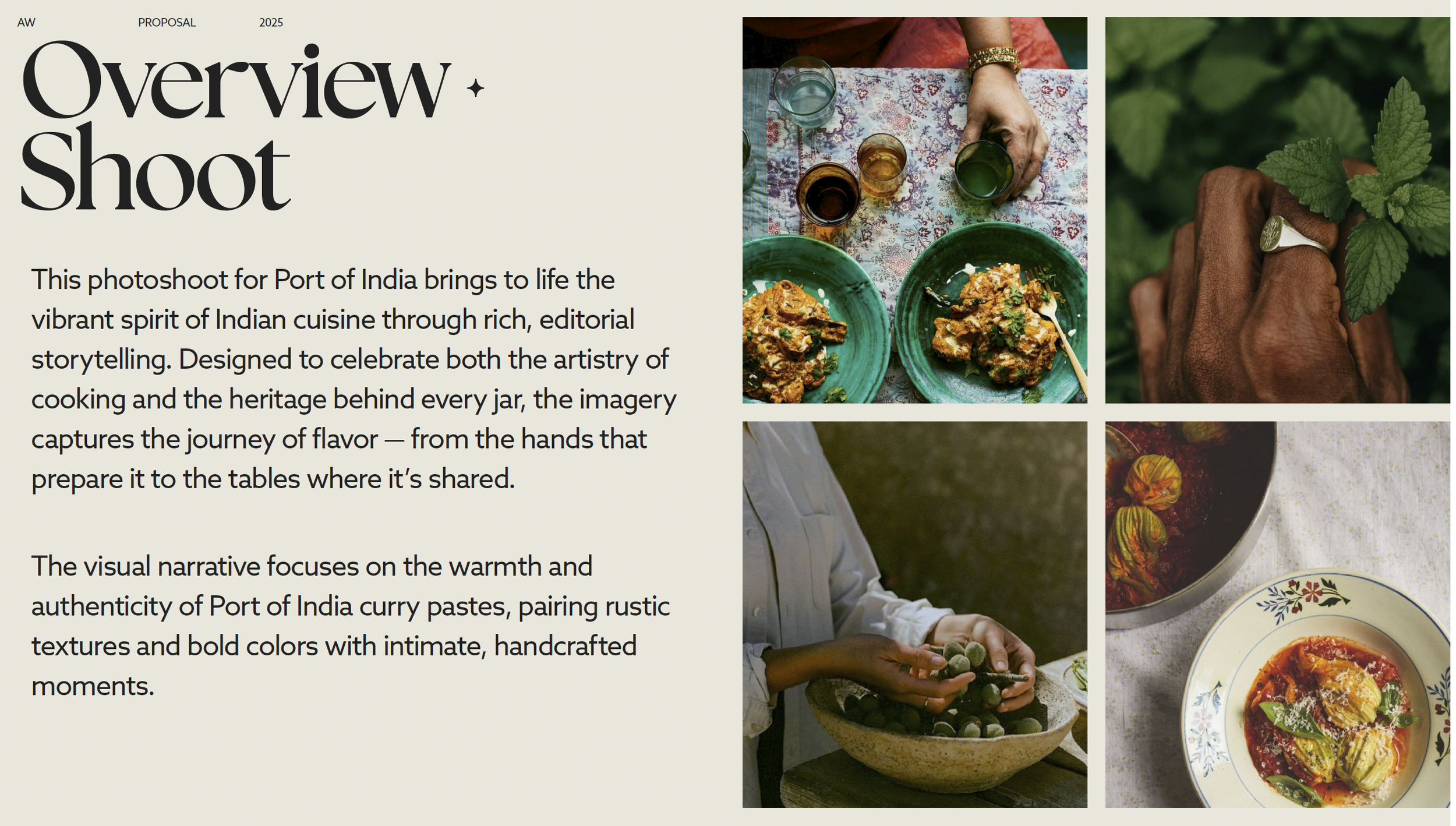 This work helped shape a more meaningful visual identity for Port of India, positioning it not just as a curry brand, but as a story of family, legacy, and cultural continuity brought to life through food.